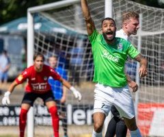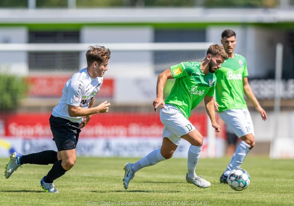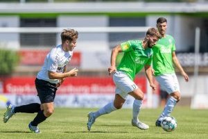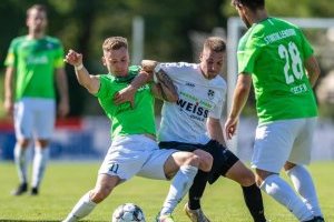 Diesmal war es im Prinzip genau andersrum. Die Mannschaft von Cheftrainer Dragan Sicaja ließ es zu Beginn etwas gemächlicher angehen und überließ den Gästen das Spielgeschehen. Die wiederum zogen ein feines Pressing auf, setzten die Herrenwälder sehr oft gehörig unter Druck, ohne aber daraus wirkliche Torgefahr zu kreieren. Die Führung für die Mannschaft von Cheftrainer Jochen Breideband fiel daher auch eher glücklich. Nicht vom Spielverlauf her, aber durch die Entstehung. Eine Flanke von der rechten Seite wurde unglücklich abgefälscht und landete so auf dem Kopf des freistehenden Ahouandjinou, der keine Probleme hatte einzuköpfen. Die beste Möglichkeit der Hausherren hatte Damijan Heuser auf dem Fuß, der aber am Gästekeeper scheiterte.