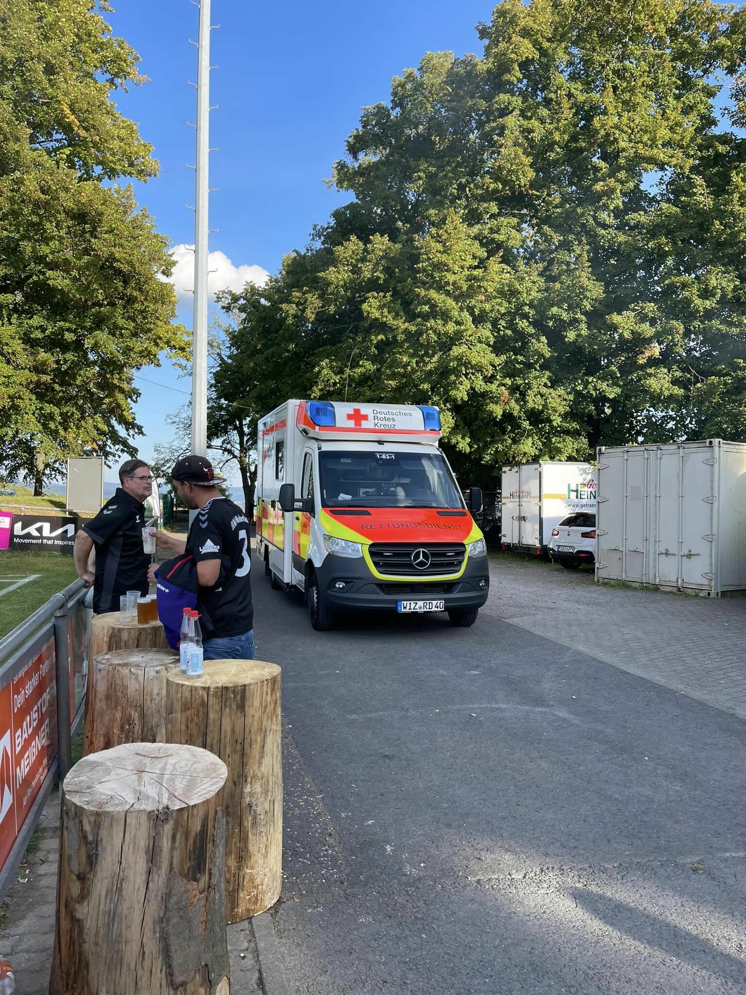 Folge: Freistoß für Stadtallendorf und Krankenwagen für Giani, der nach Eschwege in die Klinik eingeliefert werden musste.