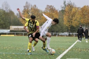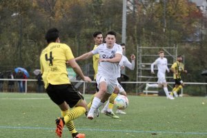 Die Anfangsphase verlief ohne große Highlights. Doch dann kam die 24. Minute, wahrscheinlich mit einem der schönsten Treffer der Saison. Eine Kopfballhereingabe versenkte Ahmet Dogan aus 11-12m per traumhaftem Fallrückzieher. Die Eintracht war kurz geschockt, konnte aber durch Damijan Heuser nur wenige Minuten später ausgleichen. Vorausgegangen war ein toller Steckpass von Mika Funk. Es blieb zur Halbzeit beim 1-1. Die Gäste waren aber bis dahin die aktivere Truppe.