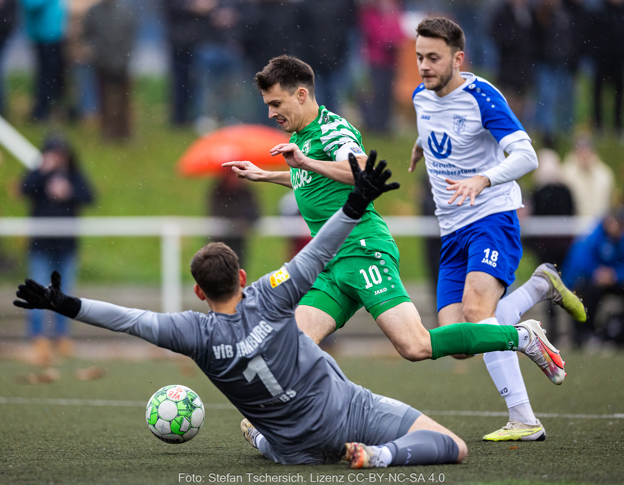 Das Derby ging bei Dauerregen rasant los und Maxi Wiessner hätte mit seinem Heber die Schimmelreiter in Führung bringen können, aber Geisler rettete. Auf der Gegenseite lief Kapitän Damijan Heuser allein auf den in der Presse vom Trainer verletzt gemeldeten Keeper Lorenz Purbs zu und verpasste das frühe 0:1.