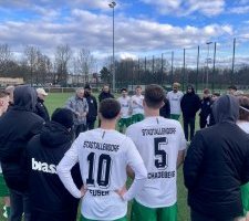 Im 2. Abschnitt nahm die Partie etwas an Fahrt auf. Eintrachttrainer Sicaja nahm in der Halbzeit 3 Wechsel vor. Für den gelbverwarnten Markovic, Philipp Stein und Tom Woiwod kamen Arne Schütze, Gianni Olizzo und Freddy Trümner. Letztgenannter Trümner war es dann auch, der die erste Großchance hatte. Nach einem riskanten Rückpass schaltete Freddy blitzschnell, scheiterte aber dann am stark reagierenden Gästekeeper. Einige MInuten später dann die Führung der Eintracht. Nach einem starken Ballgewinn von Kapitän Christopher Schadeberg am eigenen 16er ging es ganz schnell nach vorne. Neuzugang Daniel Stein trieb das Leder durch die gegnerische Hälfte und bediente mustergültig Damijan Heuser, der sich im Strafraum durchsetzte und anschließend Zeaiter mit einem tollen Lupfer zum 1-0 überwinden konnte. Ein klasse Tor ! Es ging nun hin und her. Die Gäste wollten den Ausgleich, die Eintracht ließ aber wenig zu und lauerte auf Konter. Torchancen blieben Mangelware. Einzig der eingewechselte Wüst prüfte Eintrachtkeeper Kleinheider mit einem trockenen Schuss. Es lief dann bereits die Nachspielzeit, als die Gäste doch noch zum Ausgleich kamen. Einen hohoen, weiten Ball konnte die Eintracht nicht konsequent klären und Wüst traf mit einem Sonntagsschuss zum Ausgleich. Ganz bitter, wenn man bedenkt, wann das Tor fiel und wie es zustande kam. Trotzdem sollten wir aus diesem Spiel viel Mut und Selbstvertrauen mitnehmen.