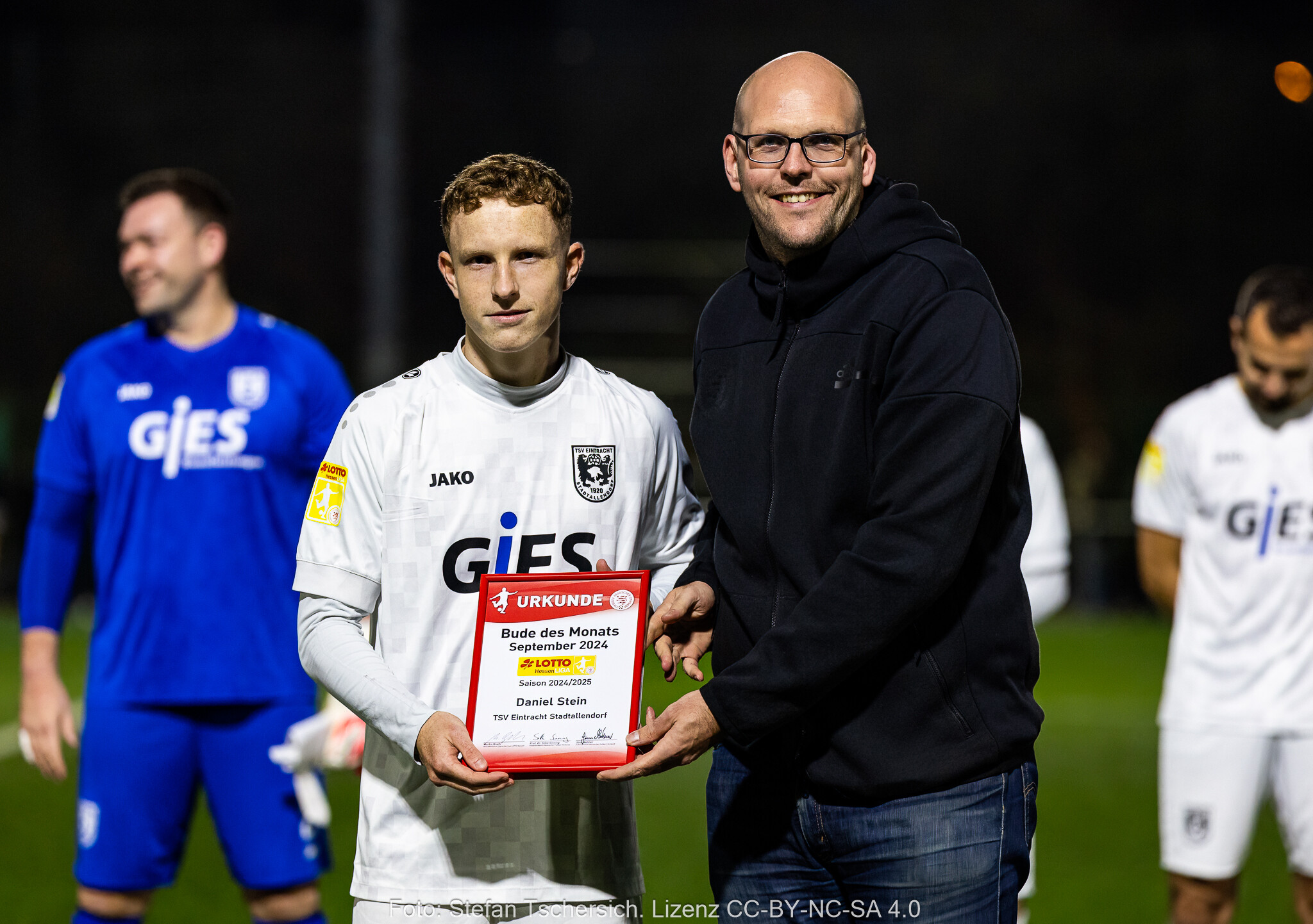 Vor dem Spiel wurden Malcolm Phillips (August) und Daniel Stein (September) für die jeweilige "Bude des Monats" geehrt. Die Ehrung führte Kreisfußballwart Matthias Schmelz (Kreis Kassel) durch.