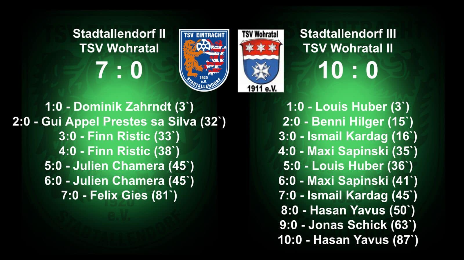 Das war ein Sonntag ganz nach dem Geschmack der "Allendorfer"! Insgesamt 17-0 lautete das Gesamtergebnis am Ende des Tages der beiden Begegnungen. Unsere U21 schaffte dabei den 1. zweistelligen Sieg in der noch jungen Historie der neu formierten 3. Mannschaft. Unsere U23 hat ihre Titelambitionen derweil untermauert und den Tabellen-4. mit 7-0 abgefertigt. So kann es gerne weitergehen!