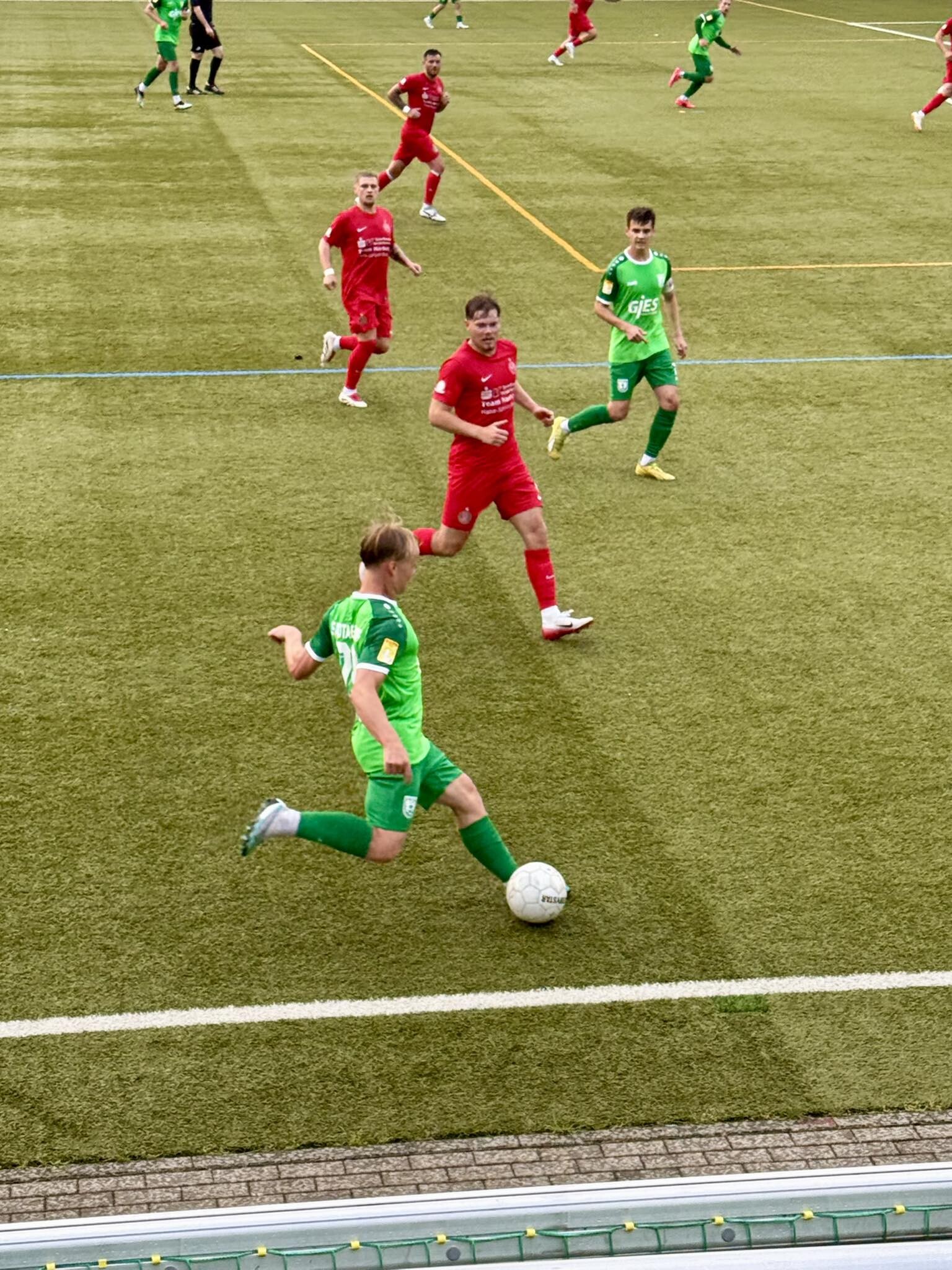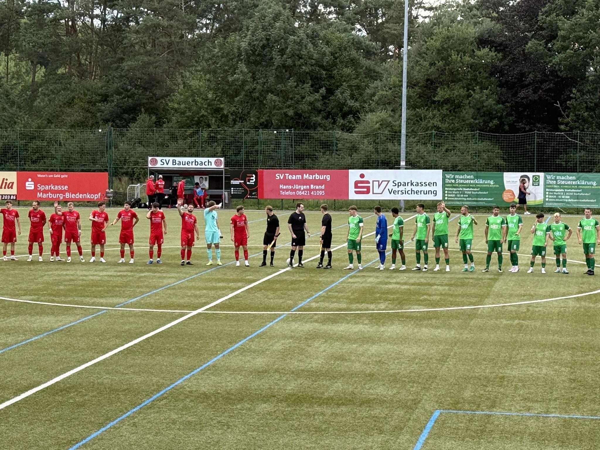 Die Bauerbacher setzten mit einem Elfmetertor durch Andreas Schoch gleich ein Zeichen. Nick Bremer glich per Freistoß über die Mauer zum 1:1 aus, Ben Onyekwere per Distanzschuss ins lange Eck erzielte den 2:1 Eintracht-Führungstreffer. Dem Ausgleich wieder durch Schoch ließ wiederum Bremer diesmal per Strafstoß das 3:2 folgen. Das sechste Tor der ersten Halbzeit durch Louis Goncalves bedeutete den Pausenstand von 2:4.